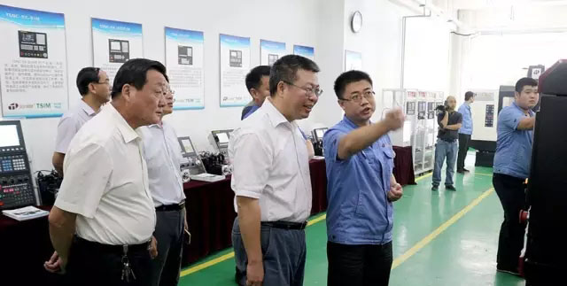 公司總經(jīng)理解潤海先生首先陪同來訪領導參觀了公司的生產(chǎn)車間,詳細介紹了具有自主知識產(chǎn)權的全系列數(shù)控系統(tǒng)、五軸加工中心、3D打印設備等。特別介紹了處于先進水平的柔性智能制造單元,并對產(chǎn)品可靠性、數(shù)控升級及產(chǎn)業(yè)化拓展等方面做了詳細地講解。接下來,津南區(qū)常務副區(qū)長李新一行參觀了中試車間和可靠性實驗室,對公司堅持科技創(chuàng)新,構建產(chǎn)學研結合的發(fā)展思路,開發(fā)具有自主知識產(chǎn)權的新技術、新裝備給予了高度評價。